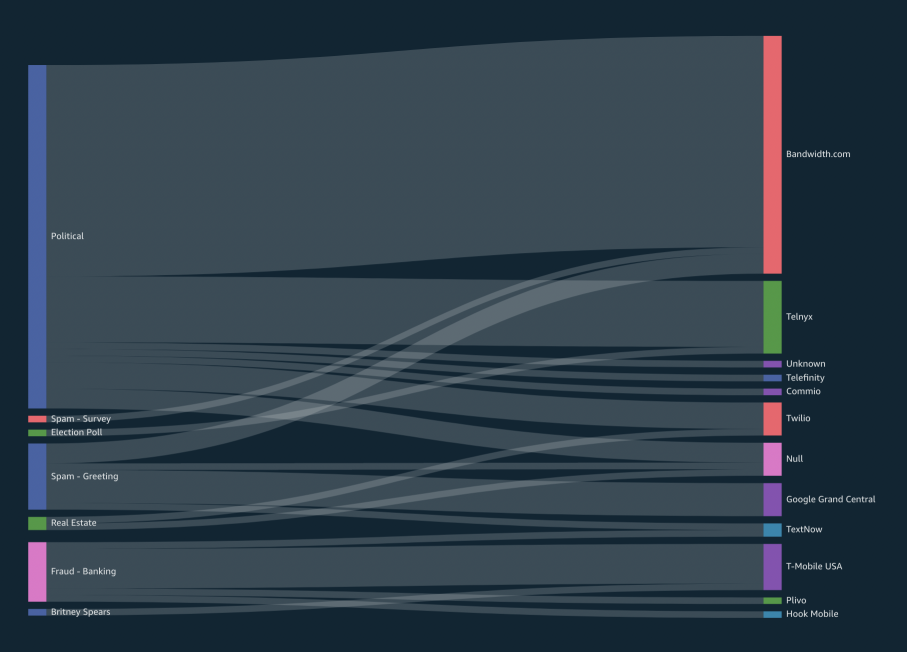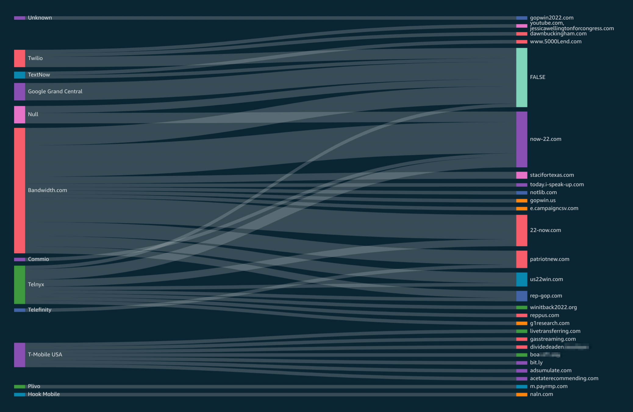 Bandwidth.com and Telnyx cover the majority of political messages.