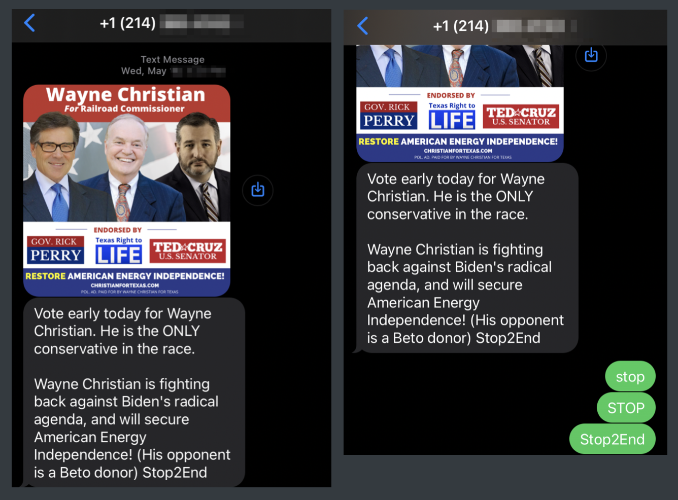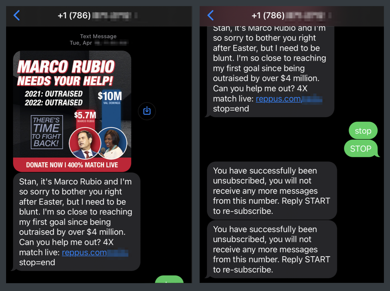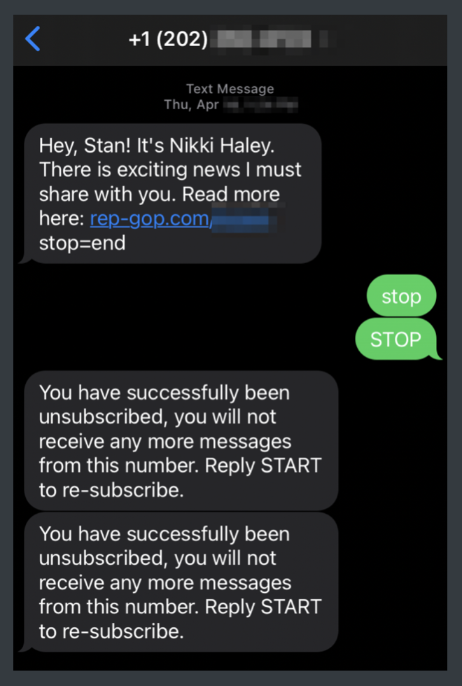 - Stop and other replies via text message are partially ignored or ignored in totality.