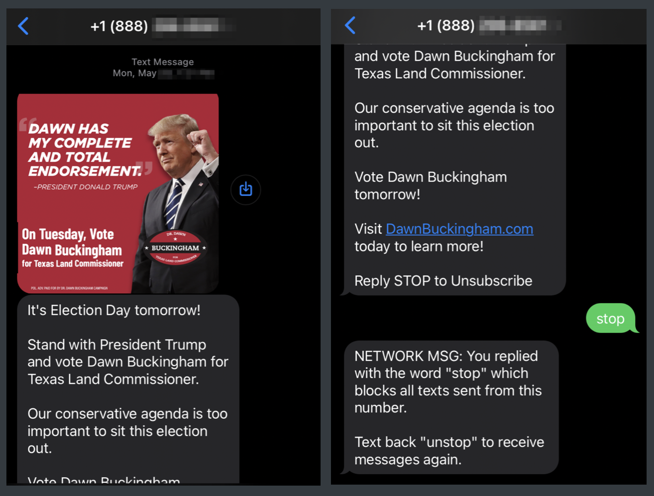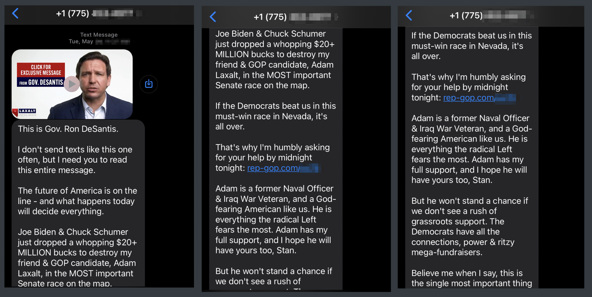 On August 10, 2022, I received a text message while on roaming and decided to see if I could take a similar approach to the political messages as I do banking fraud.